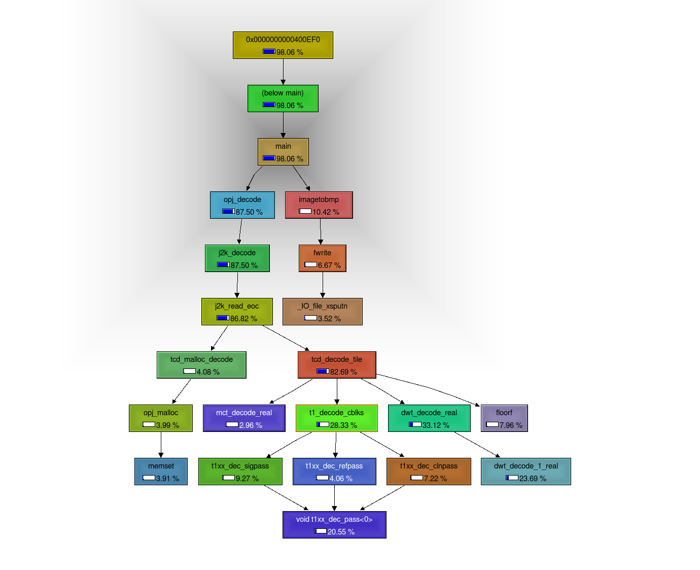kcachegrind for decoding a test image on Linux/AMD64: